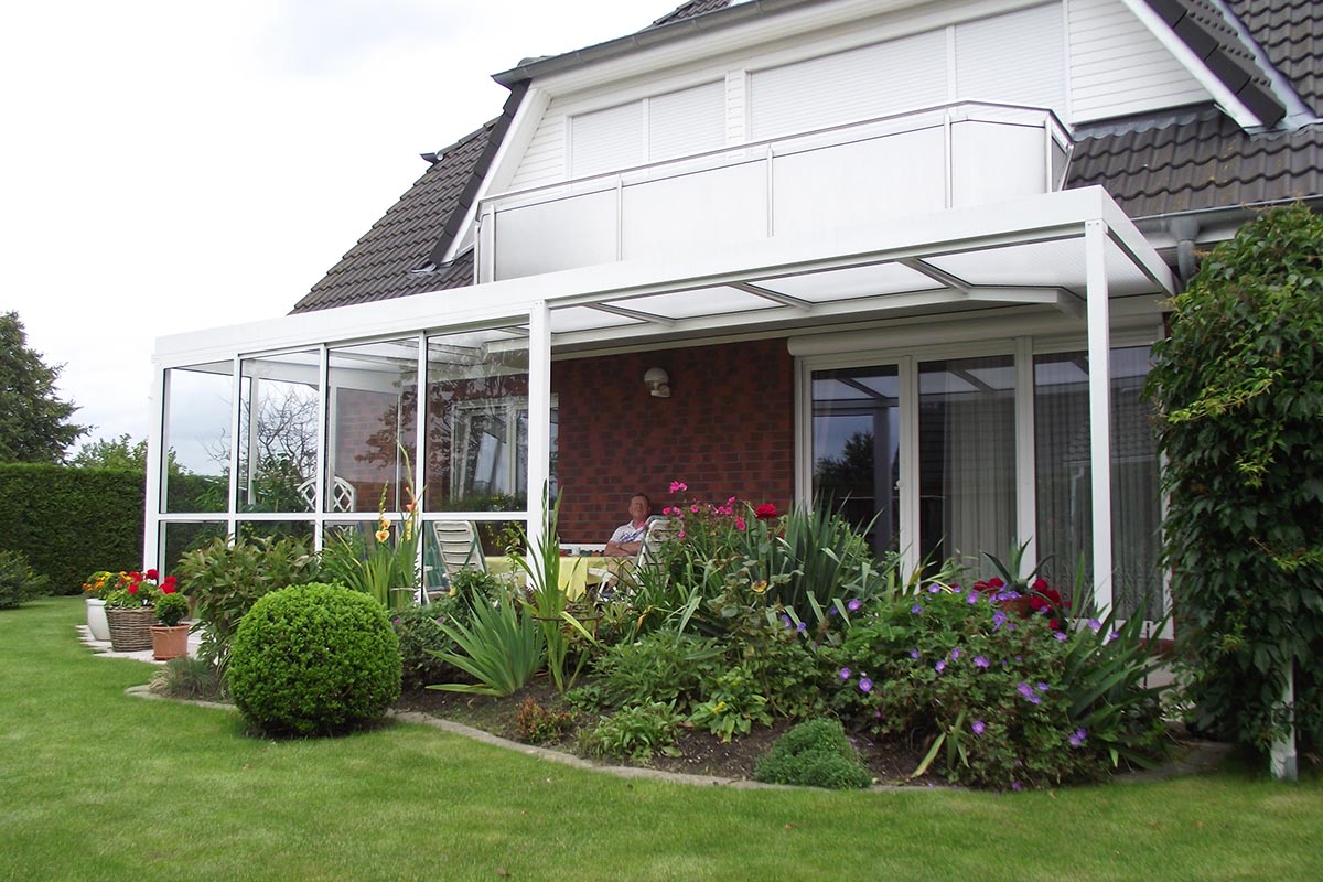 Steht an Ihrem Haus eine nur gering Ansatzhöhe für die Anbringung einer Terrassenüberdachung über den Fenstern und Türen zur Verfügung, bieten wir auch dafür eine einfache konstruktive Lösung.